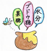 ハチミツの成分は水分、ブドウ糖、果糖です。