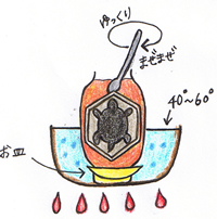 ※オレンジキャップの詰替容器は湯煎にかけないでください。容器が溶ける可能性があります。 - 亀蜜原液が溶けてきたら、時々スプーンなどでゆっくり全体をかき混ぜてください。